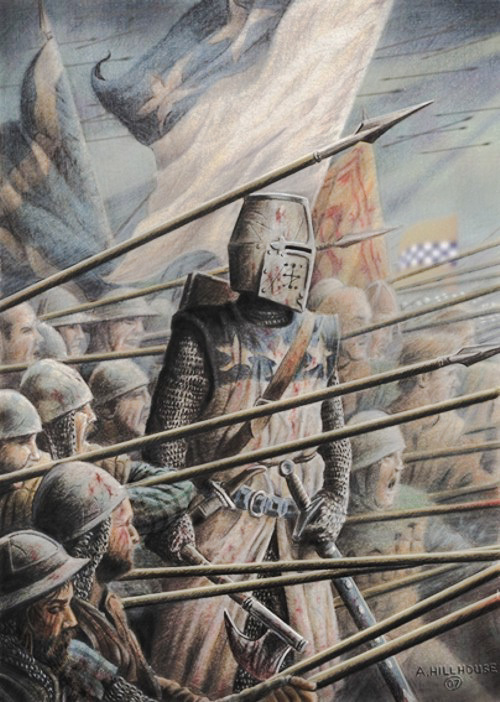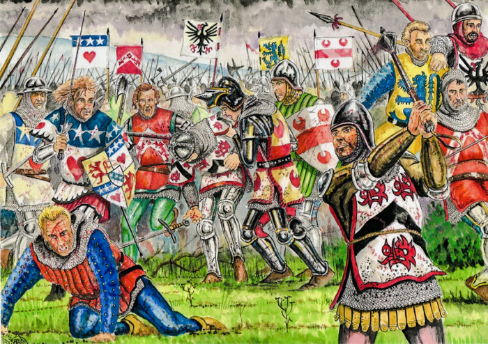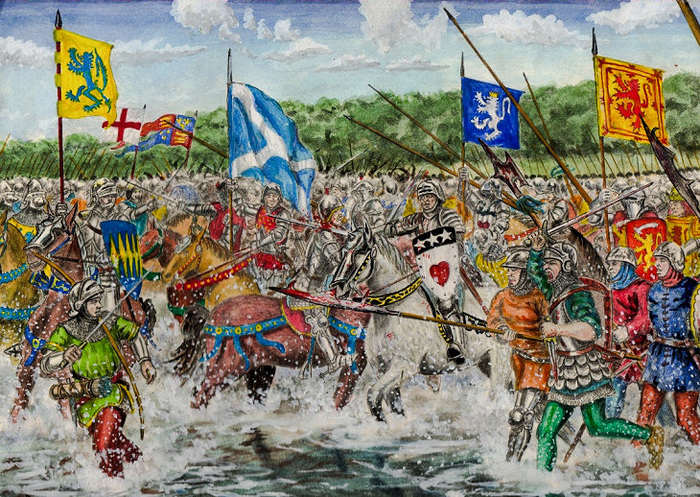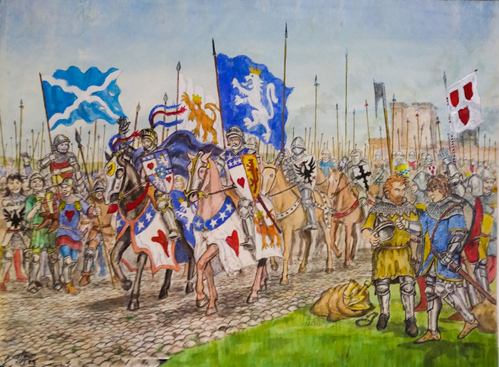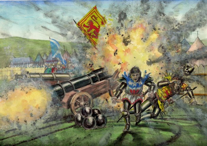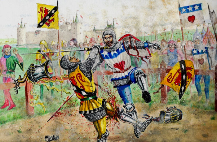 Небольшой штрих о характере пятого графа Ангус. У него возникли разногласия по поводу земельных владений с одним рыцарем, сэром Спенсом Кинспайдли. Чтобы разногласия разрешить, Арчибальд Дуглас взял свой большой меч и одним ударом отрубил оппоненту ногу, несмотря на то, что тот был в доспехах.