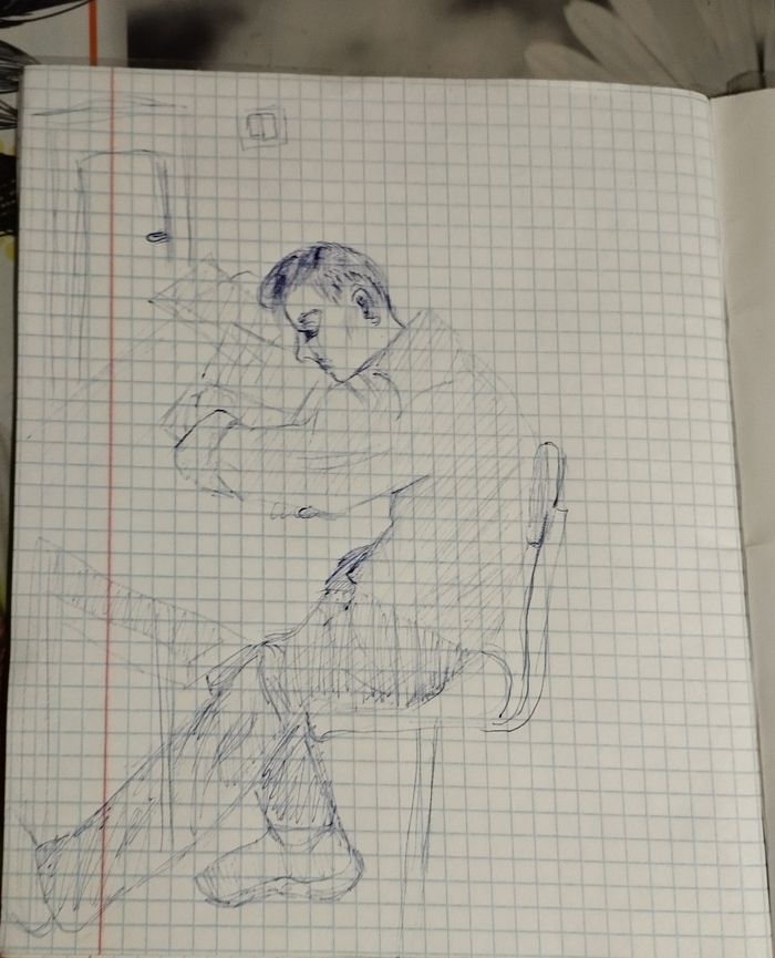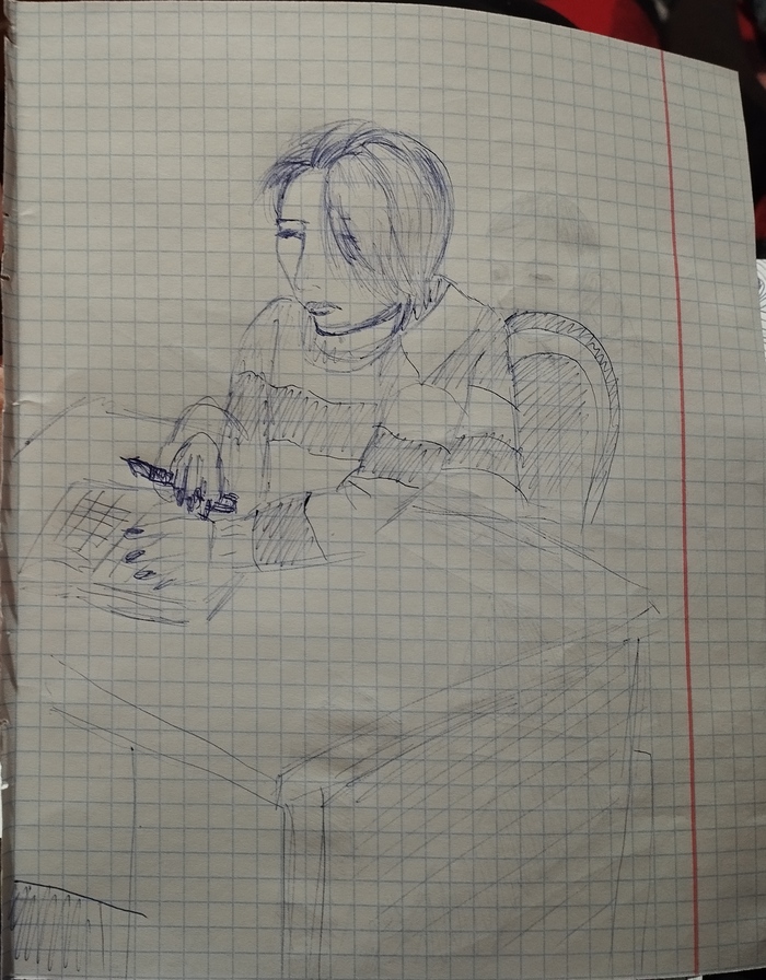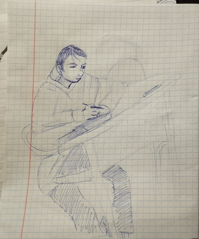 Несколько дней подряд уже рисую в школе. Как никак уже осталось совсем немножко до завершения школы, и на переменках я делаю маленькие зарисовки одноклассников и одноклассниц, простым карандашом или шариковой ручкой, в черновике.