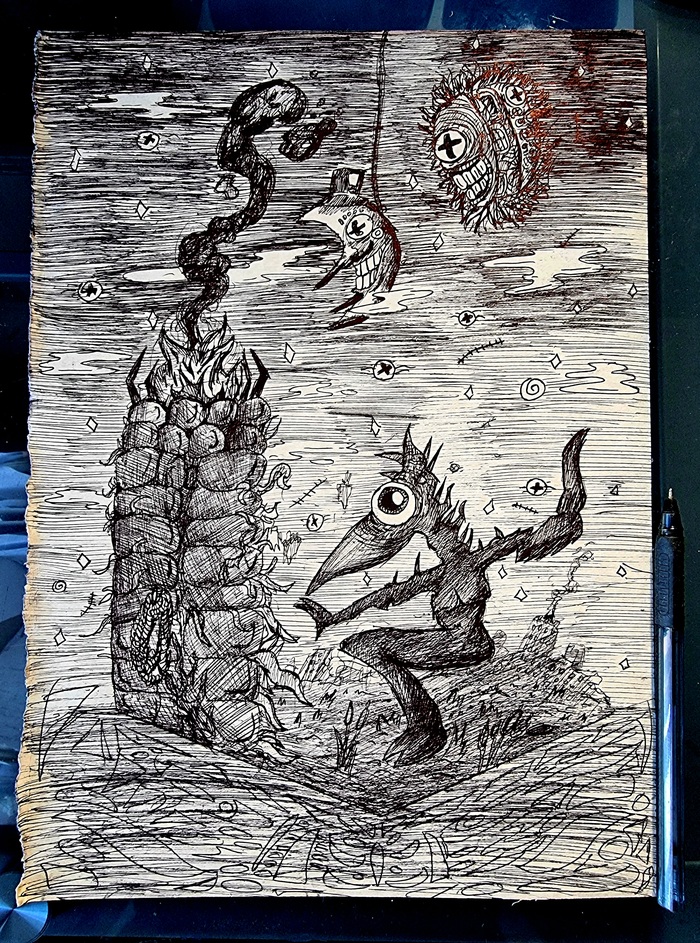 [моё] Арт Рисунок Иллюстрации Дудл Монстр Маяк Длиннопост