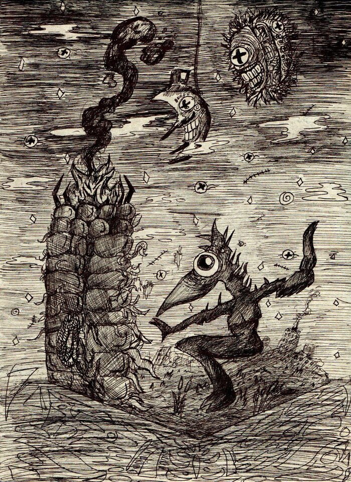 [моё] Арт Рисунок Иллюстрации Дудл Монстр Длиннопост