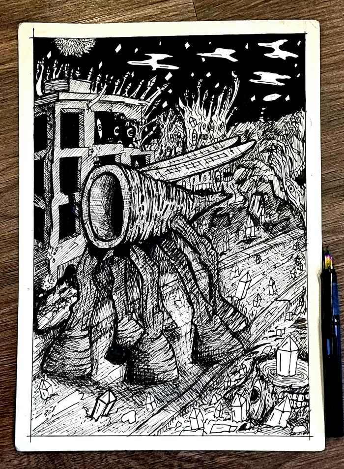 [моё] Арт Рисунок Иллюстрации Дудл Монстр Кристаллы Длиннопост