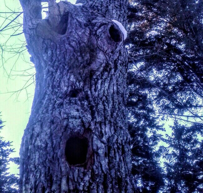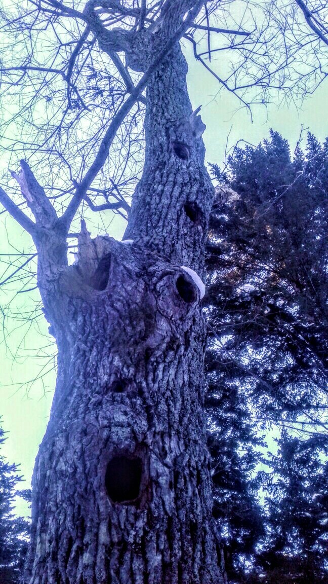Задрав голову в поисках источника щепы увидел это: