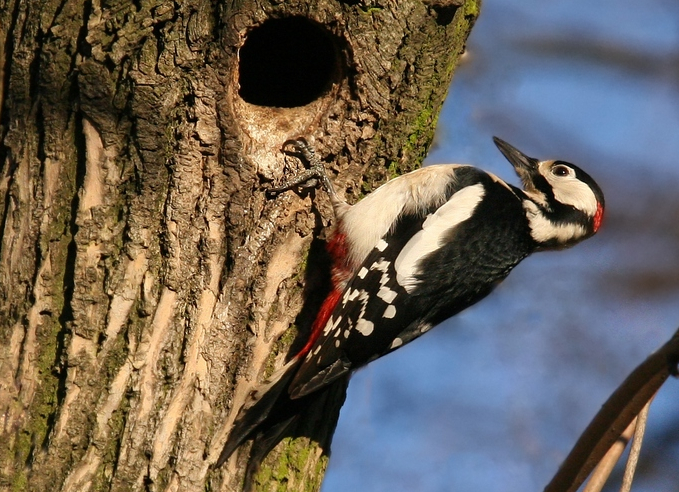 Дятлы появляются ближе к финалу. Они не создают дупло с нуля, а лишь дорабатывают то, что уже начали насекомые и грибы. Эти «перфораторы» выдалбливают размягчённую древесину, выковыривают личинок и в процессе формируют привычные нам дупла.