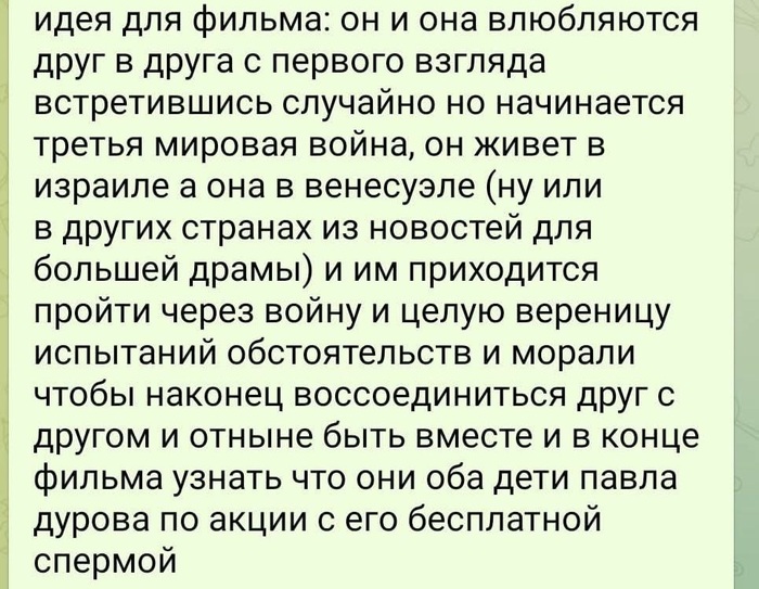 🐌 Павел Дуров нашел решение для проблемы демографии в России: нужно всего лишь настрогать как можно больше мини-дуровых! Короче, он пообещал полностью оплатить процедуру ЭКО здоровым женщинам до 37 лет, которые захотят использовать его донорскую сперму. Записаться можно вот здесь.