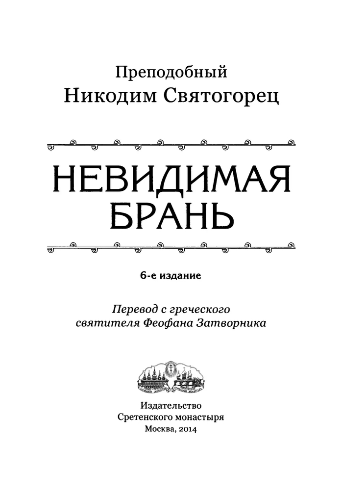 Источник: Невидимая брань / Преподобный Никодим Святогорец - Издательство Почаевской Лавры. 2013. – 216 с.