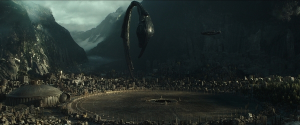 Теперь когда мы стали экспертами по древнегреческим мифам, вернемся к фильму. Нам показывают сцену уничтожения местной цивилизации. Можно подумать, что Дэвид одним ударом уничтожил всех Инженеров. На самом деле, он не убил всех Инженеров. Если присмотреться, то можно увидеть, что уничтоженная раса существ не является Инженерами. У них не абсолютно белая кожа, не черные глаза. А их город не выглядит очень технологичным. Он больше напоминает города древней Греции или Рима. И единственной технологией, которая относилась к Инженерам, была стыковочная станция, которая парила над городом. Когда Дэвид прибывает на корабле, весь город бежит встречать и приветствовать своих богов. Из этого можно сделать вывод, что это еще одна раса, «посеянная» Инженерами и оставленная в примитивном веке только для того, чтобы прославлять своих богов.