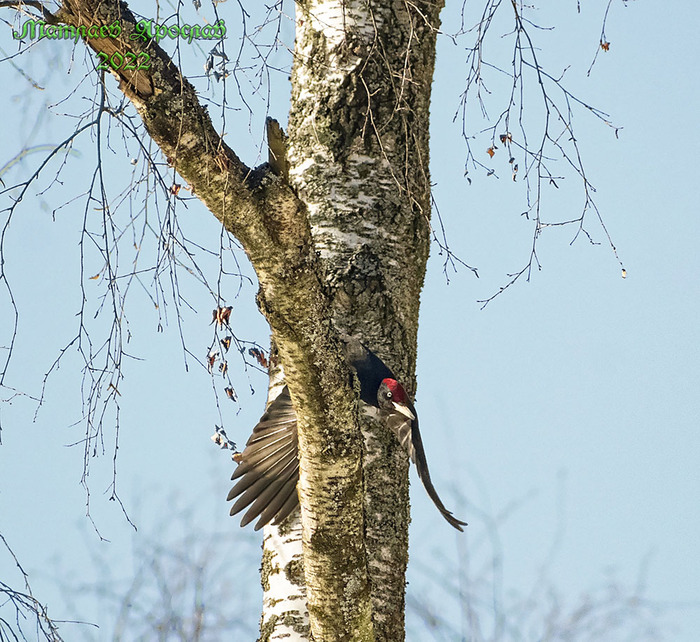 Желна, как по мне, самый осторожный из дятлов. Когда он сидит на дереве, то подкрасться к нему поближе - довольно сложное предприятие. А фотографировать влёт-ещё сложнее. И как быть любителю природы с фотоаппаратом???