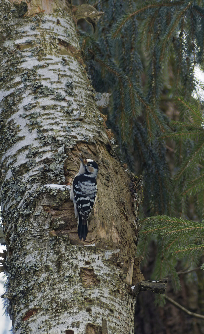 Пошёл я по тропе, прислушиваясь к звукам вокруг. То синица нарушит тишину, то поползень издаст легкий скрежет когтей о кору дерева и быстрые удары клювом выдадут его местоположение. Постояв немного для оценки обстановки - услышал четкий и громкий удар клювом. Это был нужный мне объект для съемки. Снимков получилось много, выкладываю несколько. В перерыве между охотой за дятлом - ко мне пришла белочка, достаточно любопытная. Кстати, первый раз увидел как дятел щурится, когда выдалбливает древесину.