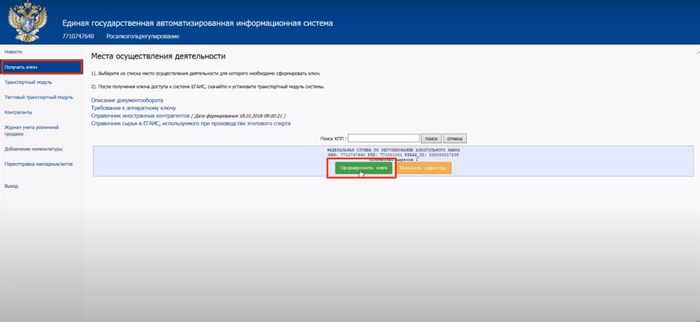 • Получение электронного RSA-ключа на сайте ЕГАИС