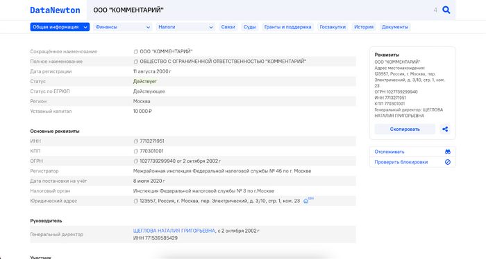 Шаг 6. Получаем лист записи из ЕГРЮЛ