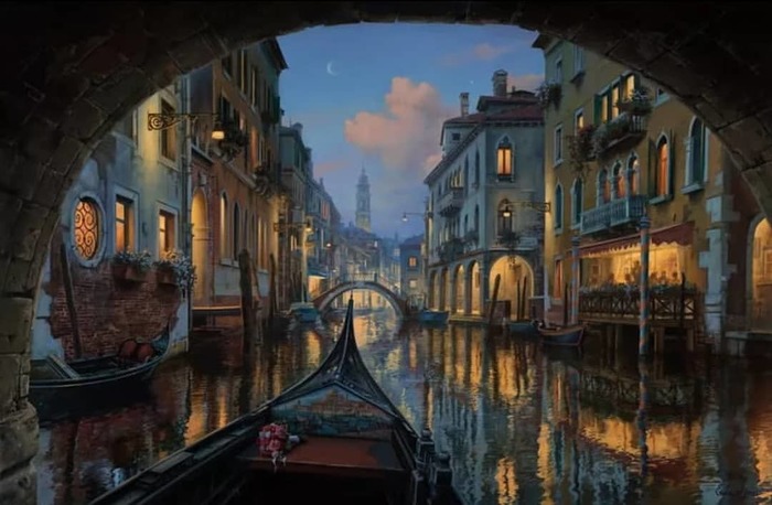 Часто вижу в фейсбуке эту картину с миллионом умилительных комментов. А по мне, она страшно депрессивная. Воплощение позднесоветской тоски. Бредешь из школы по грязному снегу, и видишь окна, за которым в крохотных кухнях одинаковые светильники, одинаковые шторы, одинаковые люди.