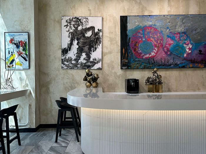 Евгения работает с темой искусства как нравственного основания права и разрабатывает собственное направление в искусстве — нонреализм. Сейчас ее выставка проходит в «СберУниверситете».