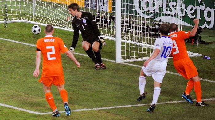 21 июня 2008 года - вообще что-то нереальное произошло... Сборная Нидерландов (Голландии) была одним из явных претендентов на выход в финал. Да и в целом неплохой футбол показывали. И тут в 1/4 финала они наткнулись на сборную России. Ну как наткнулись...видимо, не заметили и споткнулись... А как иначе объяснить такой результат? :)