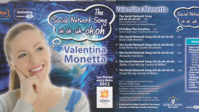 "Песня «The Social Network Song (OH OH - Uh - OH OH)» (изначально называлась «Facebook Uh, Oh, Oh (A Satirical Song)») является песней певицы Валентины Монетты, с которой Сан-Марино выступило на конкурсе. На конкурсе песни «Евровидение» 2012 года песня заняла 14-е место в первом полуфинале с 31 баллом, хотя не прошла в финал. Это был лучший результат для Сан-Марино с момента их дебюта в 2008 году. «The Social Network Song» стала двадцатым участником «Евровидения», созданным Ральфом Зигелем.