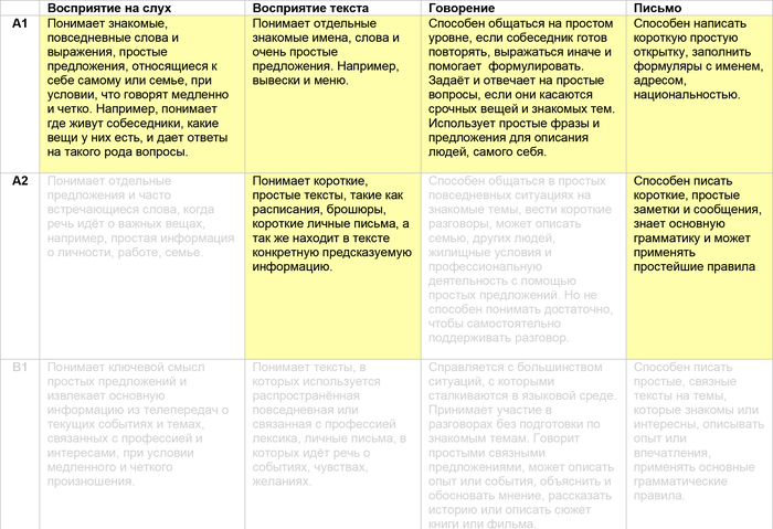 В своё оправдание лишь скажу, что до сегодняшнего дня я не разбиралась в деталях какие компетенции какому языковому уровню соответствуют и невежественно размахивала уровнем А2 не понимая, что подразумевается под этими буквоцифрами.