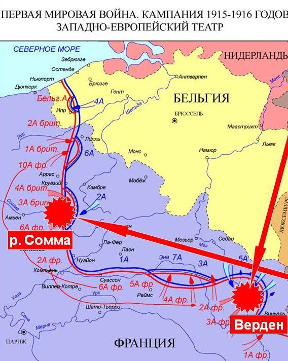 Верденская операция, начавшаяся в феврале 1916 года, по задумке начальника генерального штаба Германии Эриха фон Фалькенгайна, должна была нанести колоссальный урон французской армии и тем самым выбить "из рук Великобритании ее лучший меч" ( На Западном фронте без перемен: Газовое оружие и "Верденская мясорубка" ). Однако наступил июнь, битва продолжалась уже шесть месяцев, стороны несли чудовищные потери, но запланированного разгрома французов так и не случилось. Более того, успешно выдержав натиск немецких войск, французы сумели пойти в контратаку и оттеснить противника на исходные позиции, что, в конечном счете, сильно снизило доверие к Фалькенгайну как главнокомандующему.
