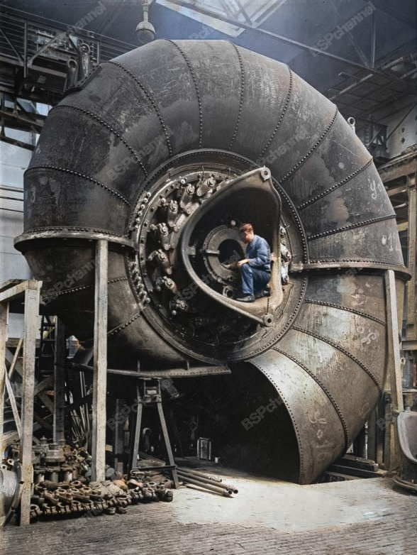 Спиральная турбина мощностью 9000 лошадиных сил, построенная в Германии для норвежской электростанции, 1928 год.