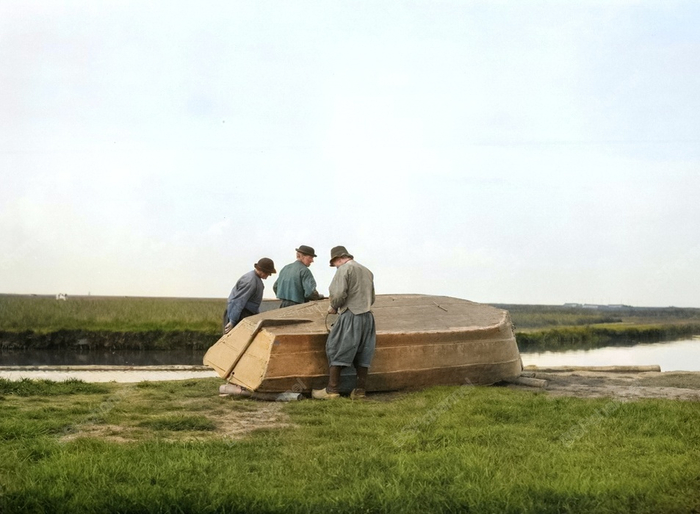 Рыбаки и лодка. Маркен, Нидерланды, начало ХХ века.