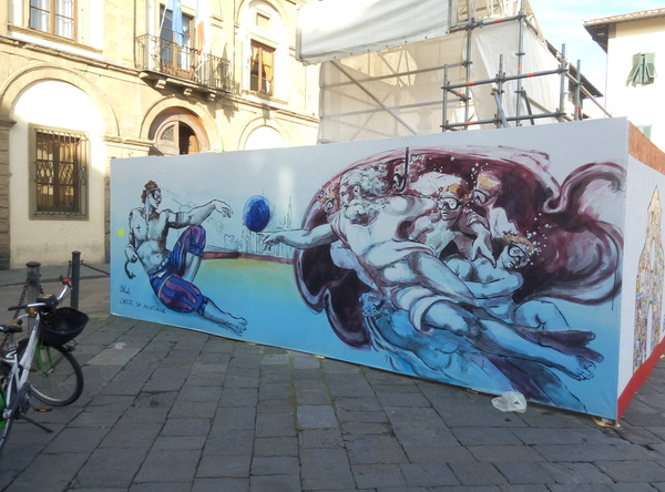 Гуляя по улочкам города, мы наталкивались на серию картин - "Искусство умеет плавать" уличного художника Blub (о нем я писал в посте про Пизу Пиза ) . На этой картине запечатлена подводная версия знаменитой "Девушки с жемчужной сережкой")