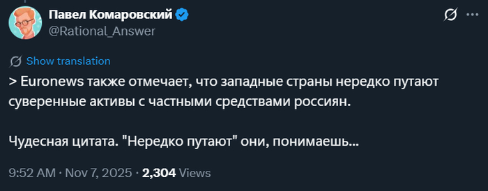 🐌 Кстати, в Euronews на днях вышел забавный материал на вечнозеленую тему: ЕС до сих пор не может определиться, в каком объеме всё-таки были заморожены валютные резервы ЦБ РФ, и где конкретно они лежат. Подробнее пишу про это вот здесь.