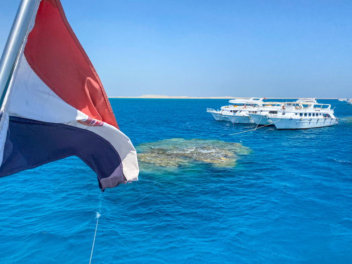 В Египте 2007-м взяли с женой и знакомыми рыболовный тур к острову Тиран, что находится на спорной территории между Шарм-эль-Шейхом и Саудовской Аравией. Брали в большом турагентстве в Наама Бэй. Не такие уж большие деньги – по 40 гринов включая обед. Большой трёхпалубный деревянный корапь, идти к месту около 4-х часов. На месте нам раздали «обед» – какие-то закуски, пепси, чай. Ну и пёс с ним с этим обедом – не очень-то и хотелось по жаре…