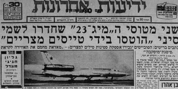Израильская газета. Перевод: «Два самолёта МиГ-23, которые проникли в воздушное пространство над Синаем, пилотировались египетскими лётчиками»