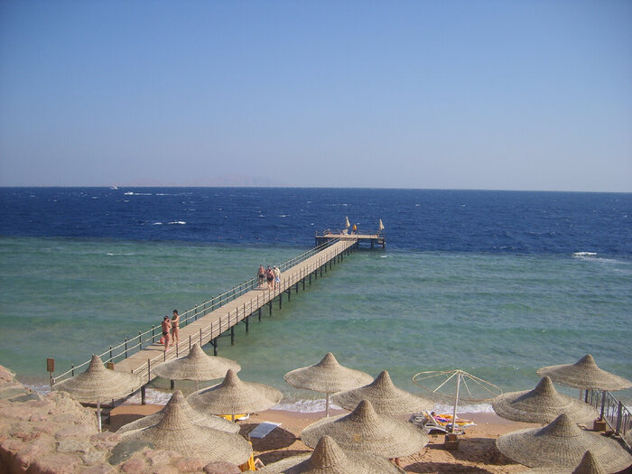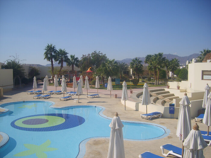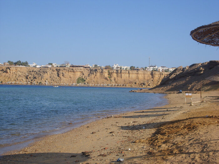 У отеля 2 пляжа: в бухте Наама-Бей и на открытом море. Но сам отель находится на 100 береговой линии и ездить приходилось на автобусе по времени. Если бухта оправдала ожидания и там было комфортно: бар, ресторан, песочек и без ветра. То второй в январе был не пригоден для отдыха: жуткий холодный ветер и нам хватило 1 раза и больше мы туда не ездили. Но я своё получил: рискнул и купил всё таки маску (на трубку пока тратится не стал) и понял- глаза в воде видят и даже не плохо.