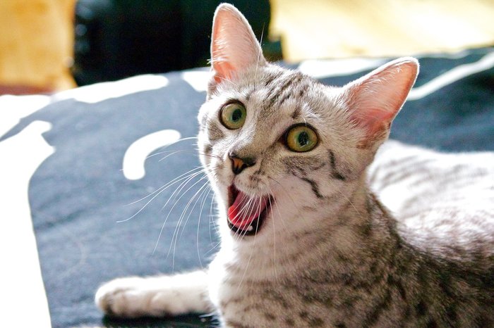 Эта порода не из общительных: мау редко издают громкое мяуканье и «делятся» своим мнением с помощью мурчания.