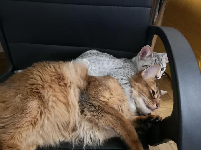 Египетские мау – довольно дружелюбные существа, поэтому для них не составит труда найти общий язык с другими питомцами. Кошка или собака – неважно, а вот с содержанием птиц и грызунов придётся повременить. Эта порода прекрасно уживается и с семьями, в которых есть дети.