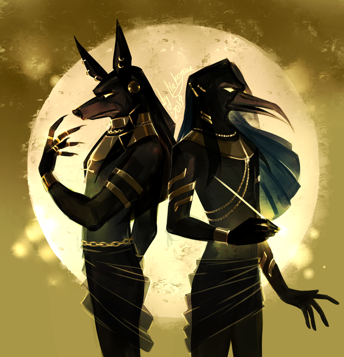 Иногда рисую по мотивам египетских мифов, потому что когда-то в детстве обожала залипать за египетские мифы и картинки с Анубисом и не только.