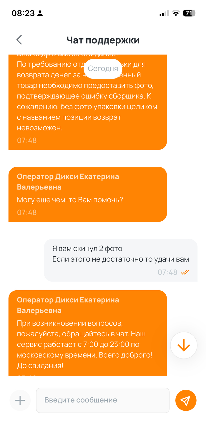 Но ладно. Я скидываю им то, что они просят. Указываю, что это не шутки, что семья уже ела вашу потенциальную просрочку и это прямая угроза здоровью. И знаете, что делает техподдержка Дикси?