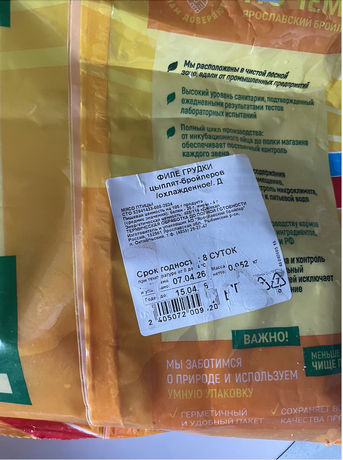 Серьезно? Я вам скидываю фото этикетки, где черным по белому набит истекший срок годности. Какую еще сторону вам нужно сфоткать? Штрихкод? Донышко лотка, чтобы вы оценили текстуру пластика? Может, курицу в разрезе?