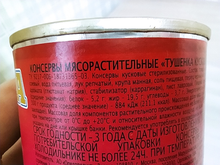 В составе не сказано, что продукт из замороженного сырья. Не знаю, радоваться этому или нет. Вскрытие ввело меня в некоторый ступор. Ведь в соусе плавали кусочки косточек, точно так же как и в одной из тушёнок за 20 рублей. И цвет соуса не был таким же ярким, как в предыдущих вариантах.