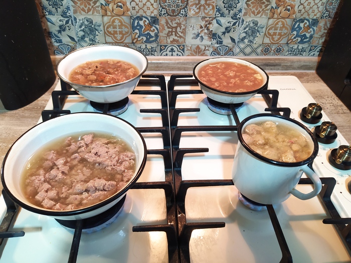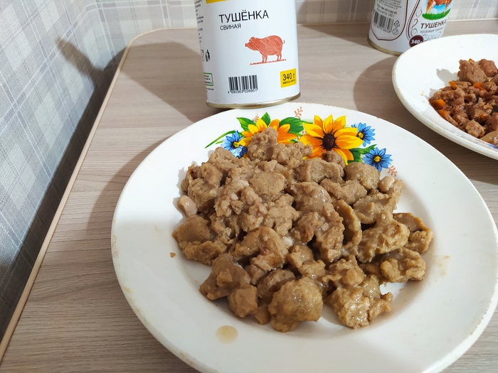 Сравнение трёх тушёнок за 20 рублей с кормом для кошек