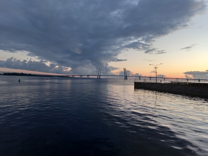 Вот вам вечерний залив и западный скоростной диаметр - платная дорога с севера на юг, где можно постоять в пробке за деньги, снятый пару недель назад.