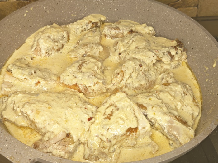 17. Выкладываем куски курицы в соус. Если хотим красиво, то ничего больше не делаем. И просто ждём.