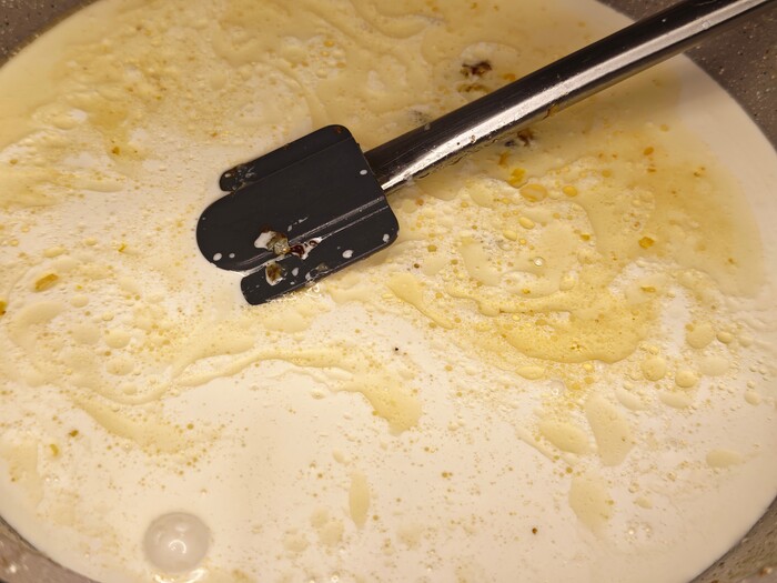 Очень часто в рецептах на просторах этих ваших энторнетов рекомендуют добавлять в соус загуститель-стабилизатор типа муки (чаще её) или крахмала. Как по мне, это лишнее - соус не должен быть слишком густым, а если его не перегревать, молоко/сливки в нем и не створожатся. Что касается специй, то можно, конечно, насыпать всего, что угодно, но зачем? Чесночно-сливочный вкус шкмерули, как по мне, ну ооооочень сбалансированный, поэтому перегружать его чем-то как-то излишне. Впрочем, блюдо домашнее, и каждый готовит его так, как хочется.