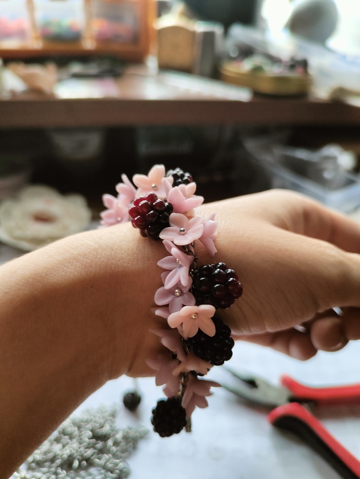 Любимое сочетание- розы с ежевикой. Делала и в ярком исполнении и в спокойных цветах, в каждом варианте свое очарование.