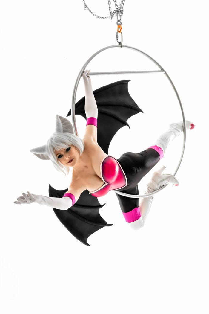 Сразу прошу гимнастов не кидать в меня тапками. Наверняка в позах куча ошибок, но это мой первый опыт работы на кольце, да ещё и в косплее. Очень уж хотелось сняться на нем в образе летучей мыши из Соника🩷