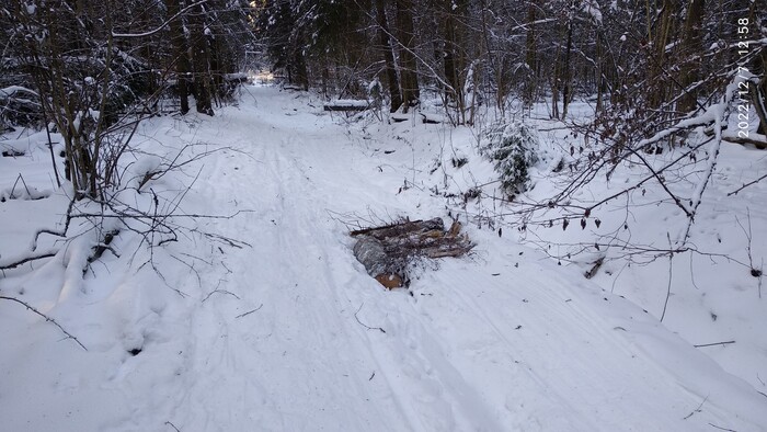 Это деревопоперек просеки лежало примерно с сентября. И никто его почему то убрать не сподобился. Зато дорожку вокруг накатали.