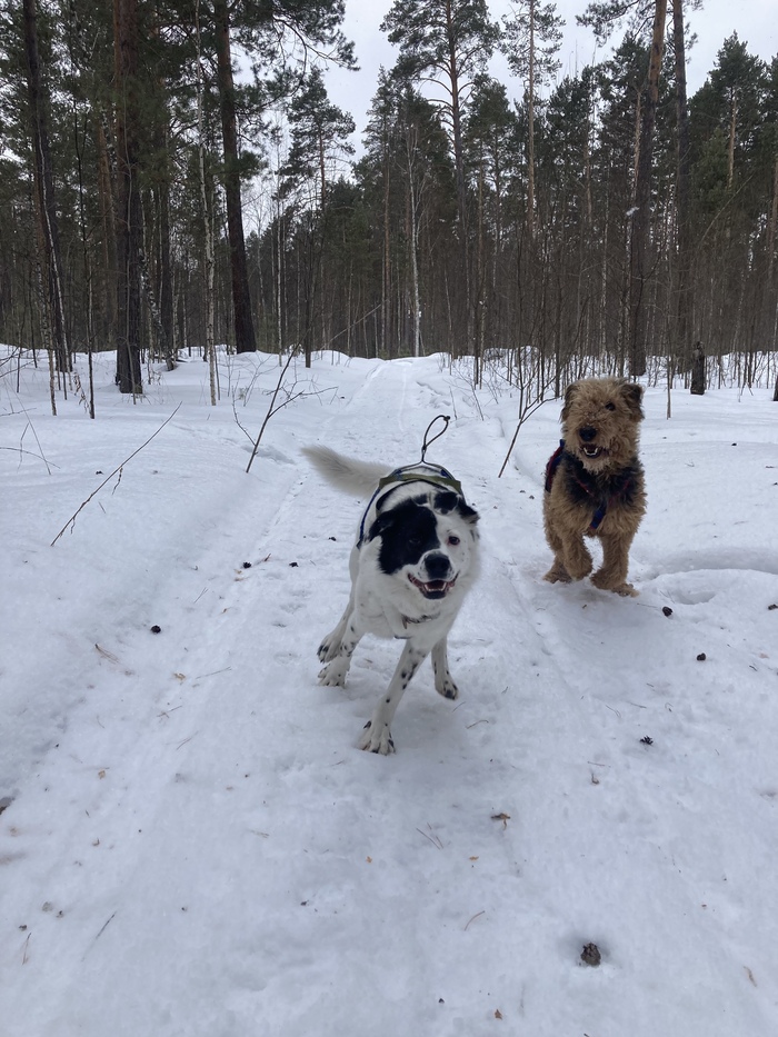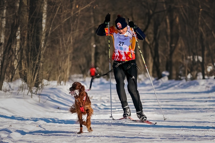 При этом нужно показать хорошую скорость. Например, для выполнения норматива КМС нужно показать среднюю скорость не ниже 19 км/ч на дистанции 5-6 км. Это примерно 3.10 на км. Правила, которые относятся ко всем дисциплинам: нельзя принуждать собаку к бегу, тянуть за ошейник, шлейку, вообще трогать собаку нельзя. Все команды только голосом. Нельзя обгонять собаку и даже бежать рядом с ней, собака всегда должна быть впереди спортсмена. Интересный факт: лучшее время, показанное спортсменом в каникроссе на 5 км за всю историю, меньше мирового рекорда на той же дистанции в лёгкой атлетике. При этом легкоатлет бежал по стадиону, а каникросс по пересечённой местности. Это доказывает то, что с подготовленной собакой сильный спортсмен пробежит быстрее, чем без нее. Каникросс считается базовой дисциплиной, т.к. именно с него начинают свою подготовку большинство собак (почему именно так, расскажу в отдельном посте, посвящённом подготовке собак). Для спортсмена эта дисциплина тоже рекомендуется в качестве ознакомительной с ЕС, т.к. именно в беге легче и быстрее наладить контакт с собакой. Например, на прошедших выходных мы проводили открытую тренировку, на которую пришли 10 любителей бега. У большинства из них нет своих собак вообще, никто из них ранее не бегал каникросс. Мы выдали каждому снаряжение и собаку, пробежали пристрелочные 850 м, а те, кому было мало, пробежали ещё 2,7 км. Я и ещё один спортсмен из нашей команды сопровождали группу, чтобы показать трассу и помочь в нештатных ситуациях. К счастью, таких не было (ну разве что одна девочка споткнулась о корягу и упала, но обошлось без травм), а спортсмены и собаки получили огромное удовольствие! Меньше всего удовольствия получил я, т.к. очень не люблю бегать, но для общего дела готов!