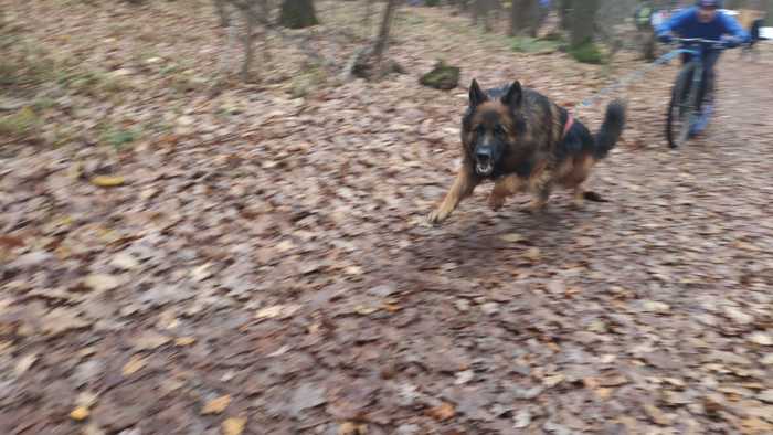 Если просто на неё "сесть", она вытянет на первом километре, а потом сильно сбавит и хорошей средней скорости уже не получишь, даже если сам начнёшь активно крутить педали. Поэтому работать велосипедисту нужно с самых первых метров. И если получится получить провисший потяг на как можно большей дистанции (т.е. сделать так, чтобы собака не тянула, а бежала максимально быстро, при это спортсмен поддерживает её скорость), то в этом случае будет максимальный результат с данной собакой. В минспортовских правилах дисциплина звучит так: велосипед 1 собака. Но многие любят её называть на иностранный манер - байкджоринг. Есть вариант с двумя собаками, который не встретишь на официальных соревнованиях, но нередко бывают на местном уровне и авторских гонках.