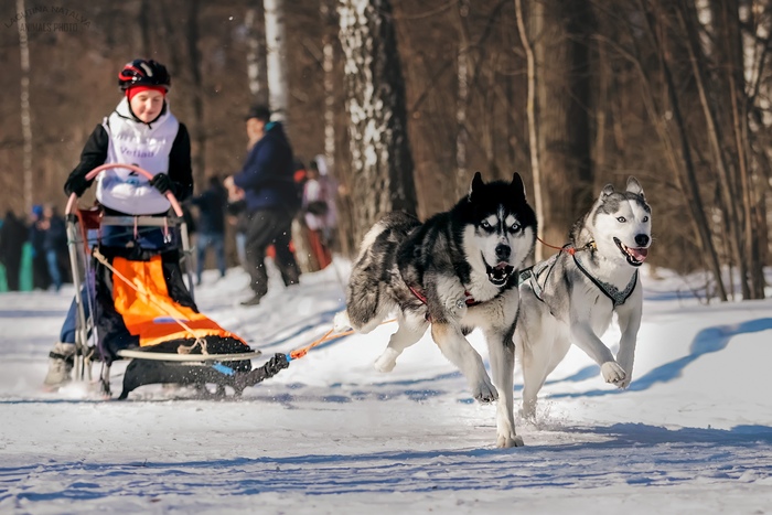 Это три разные дисциплины, т.е. двойки соревнуются с двойками, четверки с четверками и т.д. нет разделения на м/ж, но есть скоростные классы. Самой тяжёлой физически снежной дисциплиной считается нарта 2 собаки. Оно и понятно: скольжение даже самой хорошей нарты хуже, чем накат колёса, да и вес даже лёгкой спортивной нарты около 10 кг, поэтому каюру приходится работать много, скорости здесь относительно невысокие. Постоянно толкаешься, бежишь в горки, заталкивая нарту. В общем, это сродни каникроссу, только зимой и с нартой. Кстати, есть опыт проведения зимних каникроссов у нас в, стране. Это для энтузиастов, неофициальные старты. Около 1,5 км бежали по укатанному снегу.