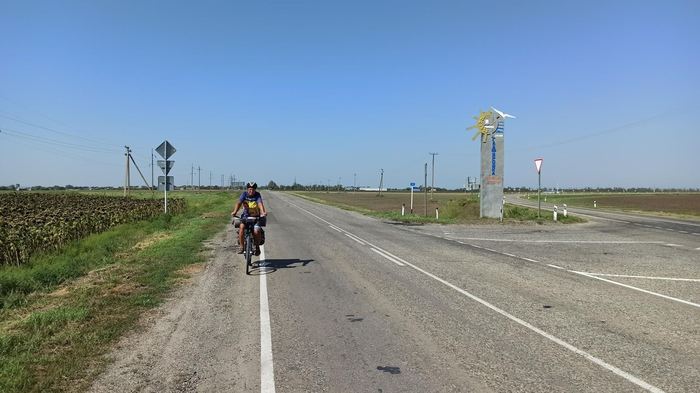 Перед станицей Старощербиновской сворачиваем на Ейскую трассу. Тут ветер становится нам попутным, дорога сама бежит под колеса. Есть достаточной ширины обочина, поэтому большегрузы, спешащие в Ейский порт, нас не напрягают. Один день, одна местность, а такие разные ощущения от езды, стоит лишь поменять направление. Ветер решает многое.