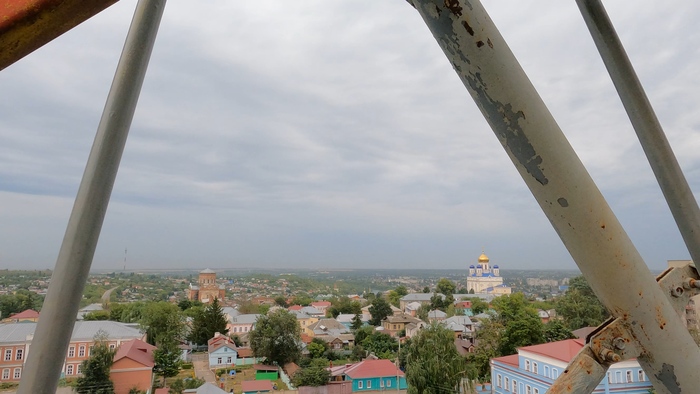 Не учёл, что трасса проходит вдали от населённых пунктов. Заканчивается еда. Воды осталось полфляги. А вокруг поля бескрайние. Ни магазинов, ни заправок. И ещё дождь намечается по прогнозу. Съехал в город Елец. Заодно осмотрю достопримечательности. Старые храмы, крепости.