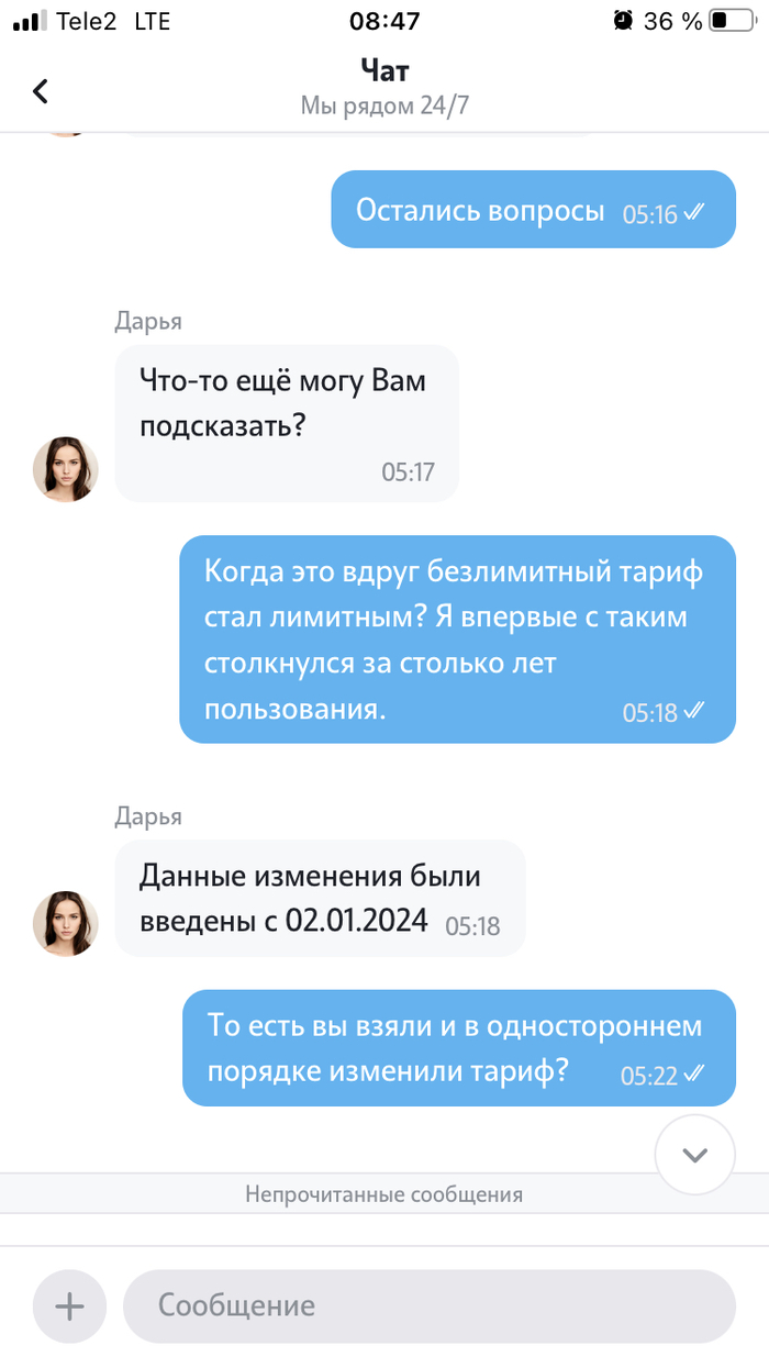 Буквально через пол часа она сообщила мне, что мне готовы оставить безлимит и раздачу и плюс к этому снизили цену на тариф с 600 до 160 рублей.