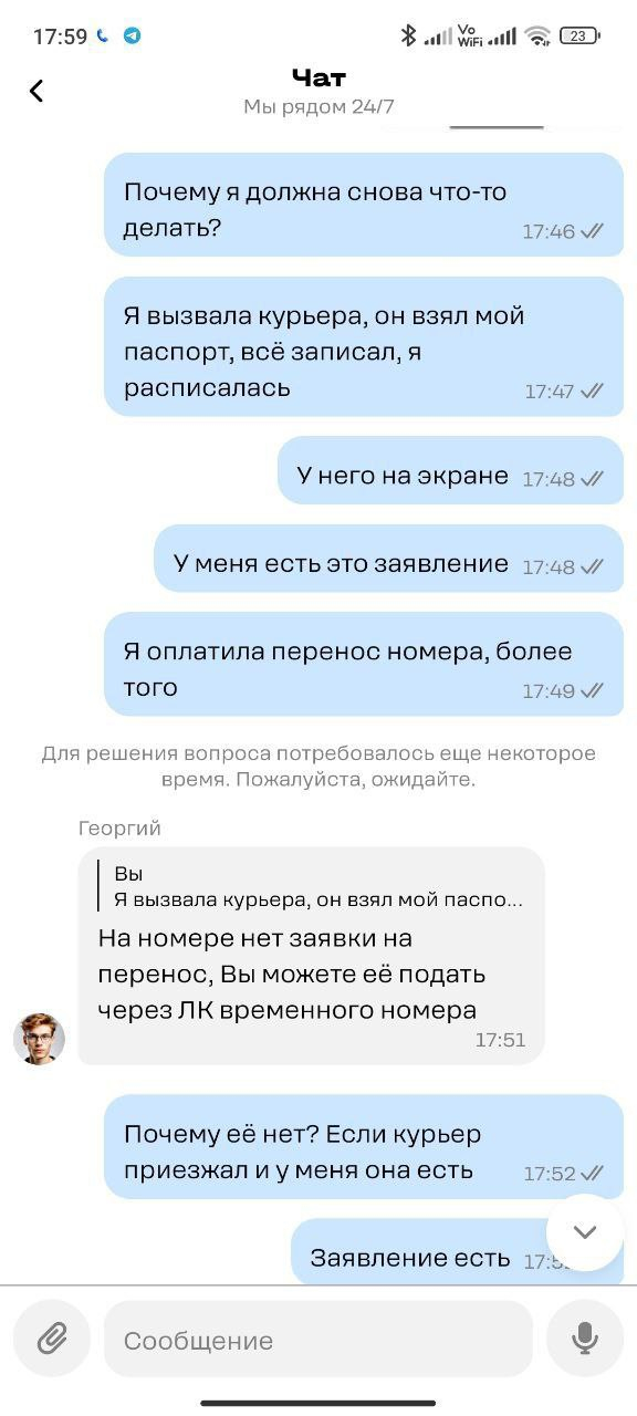 После этого уже три раза заходил в салоны. Каждый раз мне говорят, что заявка есть, но не хватает людей для обработки, но завтра переоформление обязательно случится.