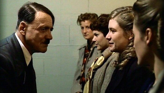 Актерская игра в фильме вообще на редкостной высоте. Тут, что называется, «верю». Верю и в этакого Гитлера добрячка-старичка, «дедушку Адольфа», отечески относящегося к молоденькой секретарше и тут же впадающего в истерию, изрыгающего проклятия на своих генералов, а потом впадающего в прострацию.