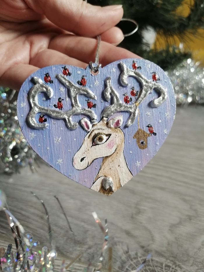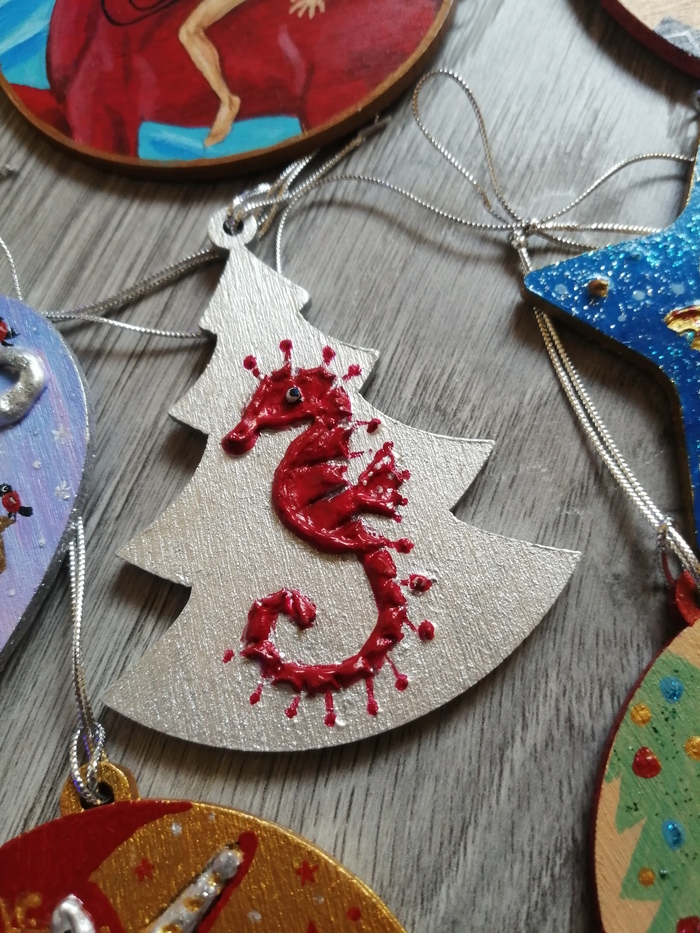 Поменьше размером и фигурные. Размер 6-7 см, акрил по дереву, текстурная паста, блестки.