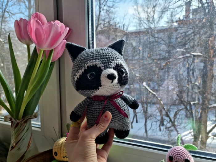 (Енотик с бардовой ленточкой на фото поехал на ярмарку и не вернулся).